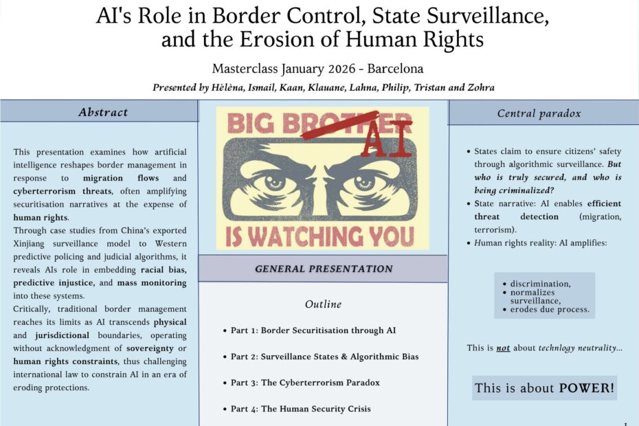 AI’s Role in Border Control, State Surveillance, and the Erosion of Human Rightspar admin Sce Po Strasbourg Groupe 2 Powered By EmbedPress Laisser un commentaire Annuler la réponseVotre adresse e-mail ne sera pas publiée. Les champs obligatoires sont indiqués avec *Nom * E-mail * Site web Commentaire * Enregistrer mon nom, mon e-mail et mon site dans le navigateur pour mon prochain commentaire. Δ